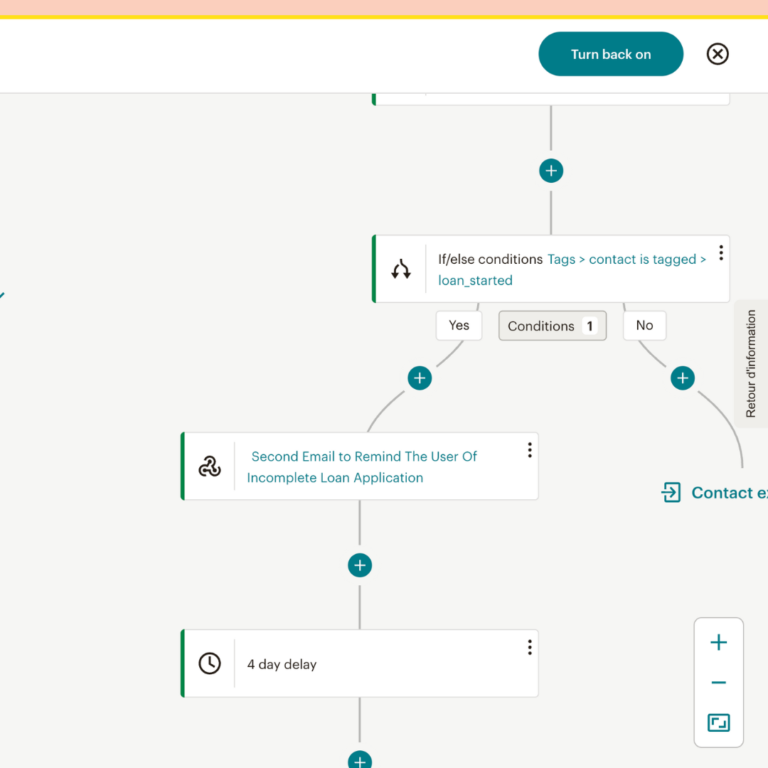 I developed an email automation strategy that tracked user progress through the loan application journey and delivered targeted messages based on where they stopped. This required close integration between our backend system and Mailchimp’s automation capabilities.